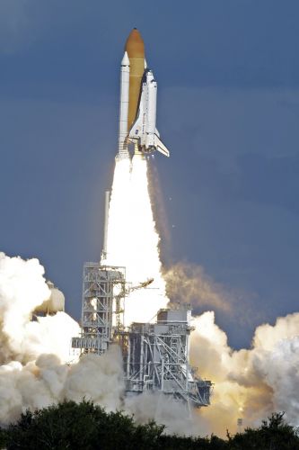O ônibus espacial Atlantis, pouco depois do lançamento,